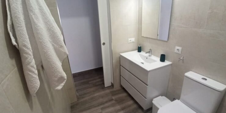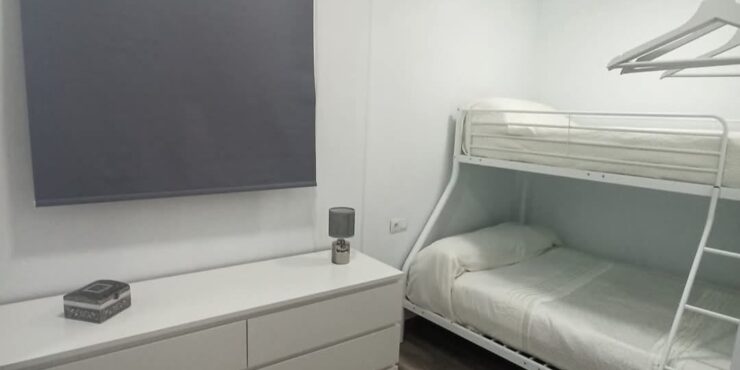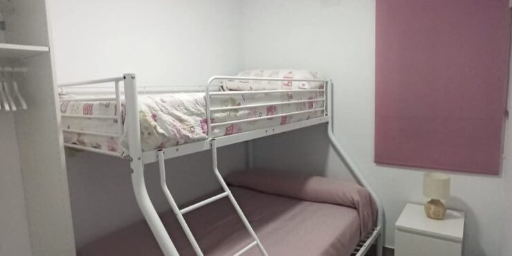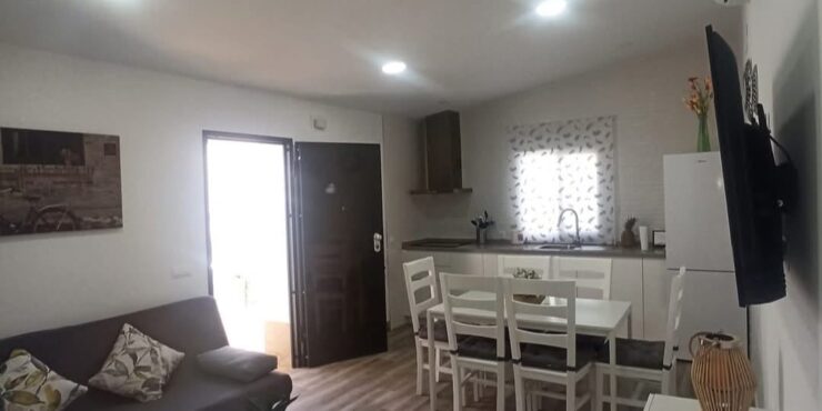 Casa independiente a 7 min de la playa y 2 min de la calle peatonal. Tiene 2 dormitorios (cama de matrimonio e individual), baño, aseo, terraza, salón-comedor, cocina abierta, aire acondicionado, sofá cama. Capacidad para 7 personas. No se admiten mascotas.