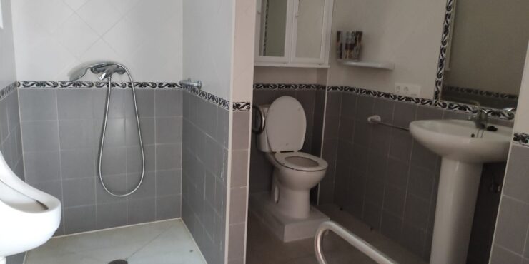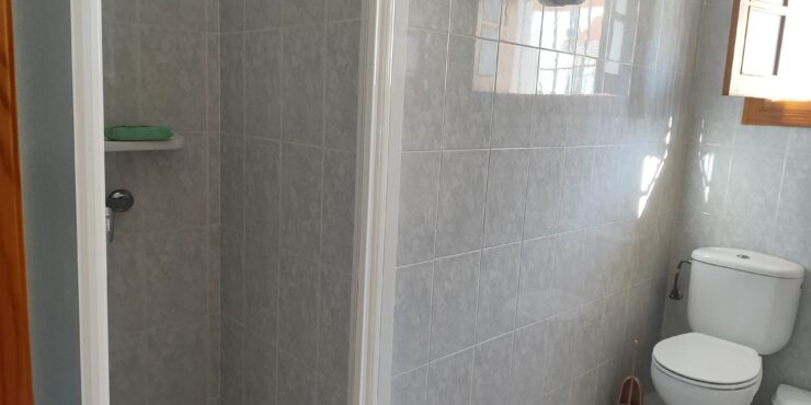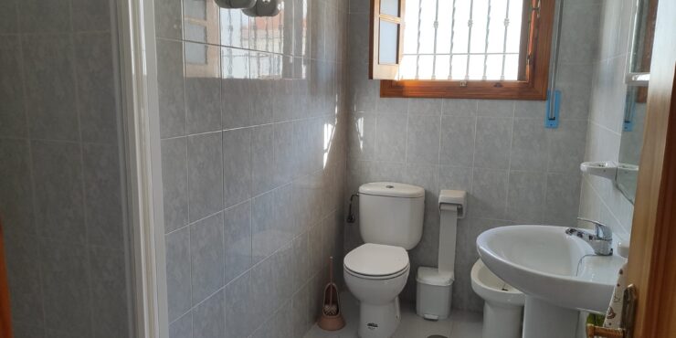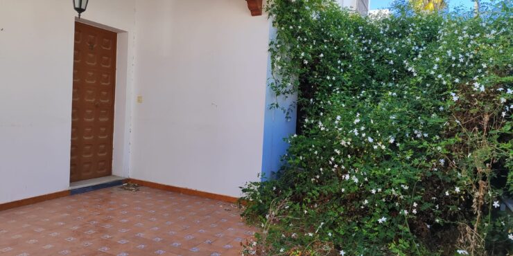 -Vivienda en planta baja: Cuenta con aparcamiento en superficie para varios vehículos, porche y terraza delantera con toldos automáticos, 3 dormitorios , 2 cuartos de baño ( uno de ellos adaptado para minusválidos) y aseo, salón – comedor con aire acondicionado, cocina independiente, patio interior propio con toldo automático, lavadero, escalera de acceso a la azotea.